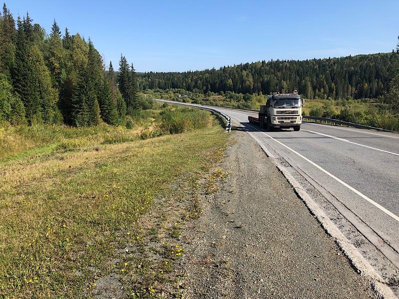 Der Ural ist kein Hochgebirge und auch nicht besonders breit und die Überquerung des Ural vergleichbar vielleicht mit einer Fahrt von Ost nach West durch den Schwarzwald. Der höchste Pass maß gerade mal 820 m und nach ca. 2 Stunden war der Ural durchquert, trotz unendlich vieler LKWs.