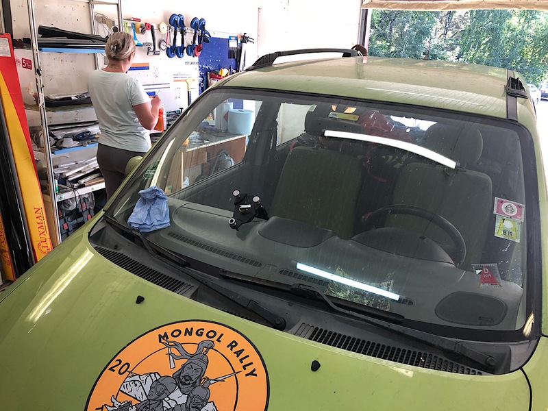 Wir beschließen eine Werkstatt zu suchen. Die erste, bei der wir unser Problem schildern, schickt uns gleich weiter zu einer zweiten in der Nähe. Asto heißt die Firma und die Spezialistin für Glasreparaturen macht sich sofort ans Werk.